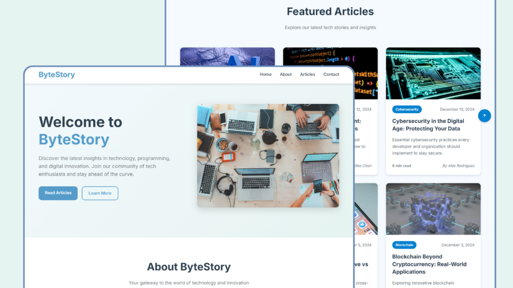 Transform your tech blog with ByteStory - a modern, professional website template designed specifically for technology enthusiasts, developers, and digital content creators.